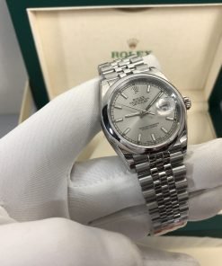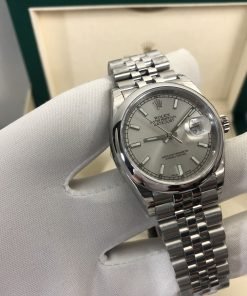 تعتبر ساعة رولكس ديت جست بالتاريخ أرضيه لون رمادي مقاس 36